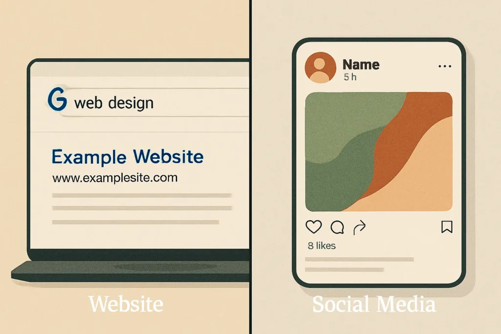 A website is fully yours, always open, and designed exactly how you want it. It gives you credibility, control, and a long-term place to grow. When paired with social media, it becomes a winning combo that helps your business look good, sound trustworthy, and reach more people.