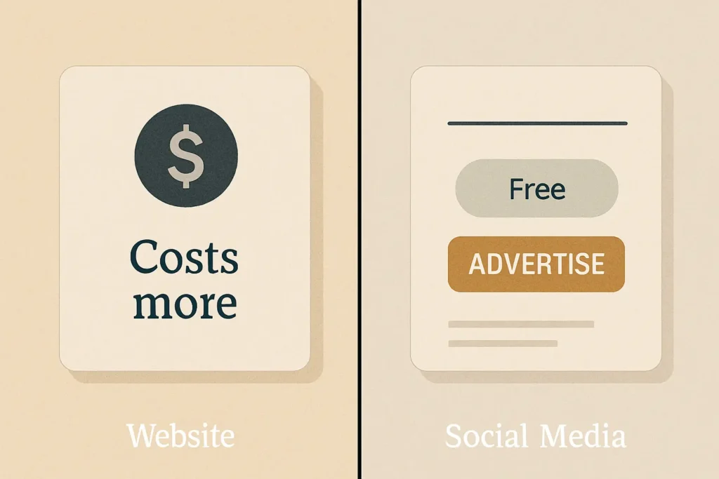 Budgeting plays a big role in choosing between website vs social media, especially for small businesses trying to balance setup costs with long-term benefits.